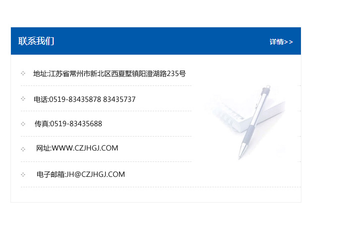 地址:常州市新北區友邦商務大廈1幢16、17層  電話:0519-85101652  傳真:0519-85112595  郵編:213022  網址:www_cz-jiayue_cn.tj12580.com  郵箱:xiajifengaa@163.com